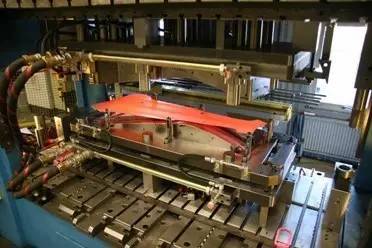 将钢板(初始强度为500~600MPa)加热至奥氏体化状态,快速转移到模具中高速冲压成形,保压淬火一段时间,以获得具有超高强钢零件的成形方式。可提高提高部件强度、焊接性、表面硬度、抗凹性、耐腐蚀性,降低冲压机吨位。