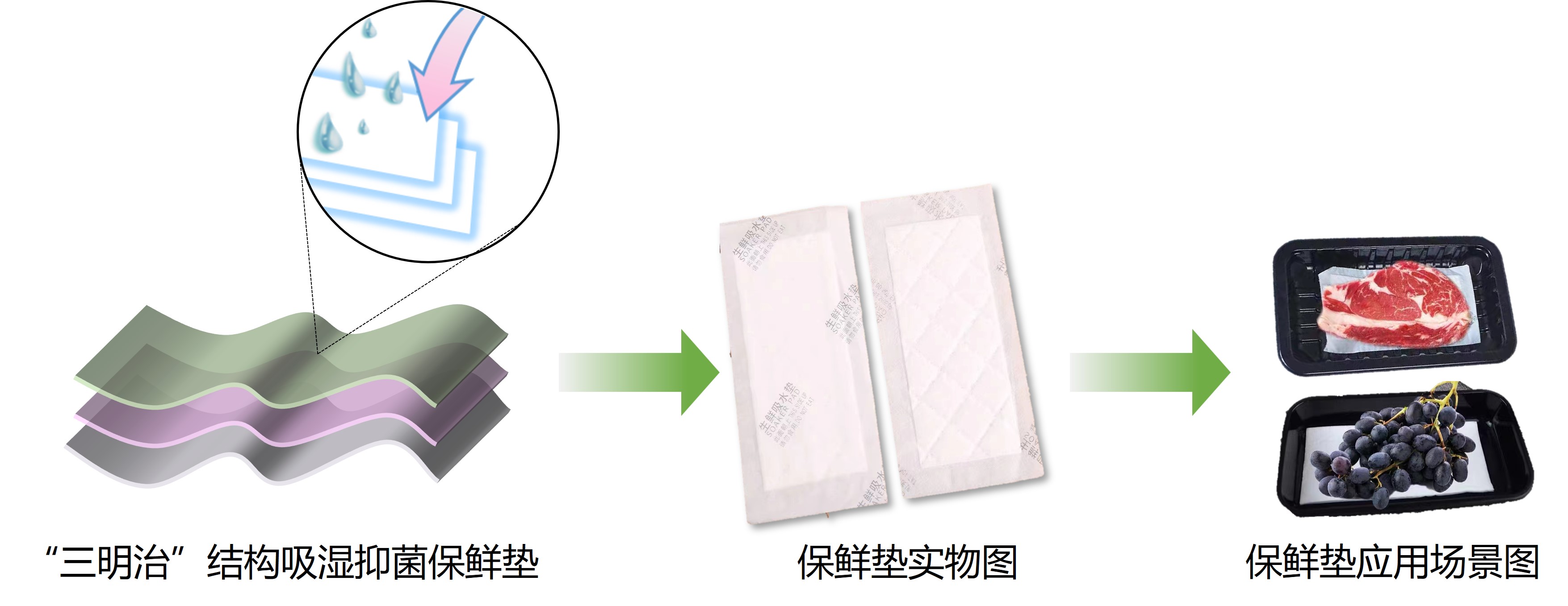 具有定向吸湿和抑菌功能的新型“三明治”结构食品保鲜垫
