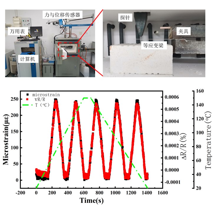 开发的应变薄膜可以实现温度自补偿、热输出小,对环境扰动小,响应快, 1)复合保护层技术,改善应变薄膜的高温稳定性,实现高温到800度的动态应变测量,800℃保温10h后电阻漂移率0.0004/h,国内领先水平。 2)温度自补偿应变薄膜,热输出小。TCR小(65ppm/℃)甚至接近零,无需补偿电路,尤其适合于有限空间的应变测量。 3)可以在部分被测构件上直接集成应变薄膜,避免了传统粘贴导致的测量不准确、蠕变或滞后问题。